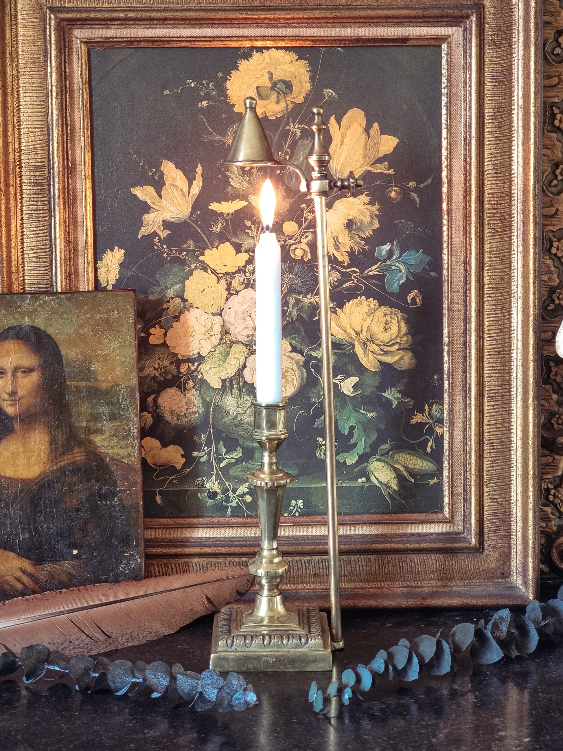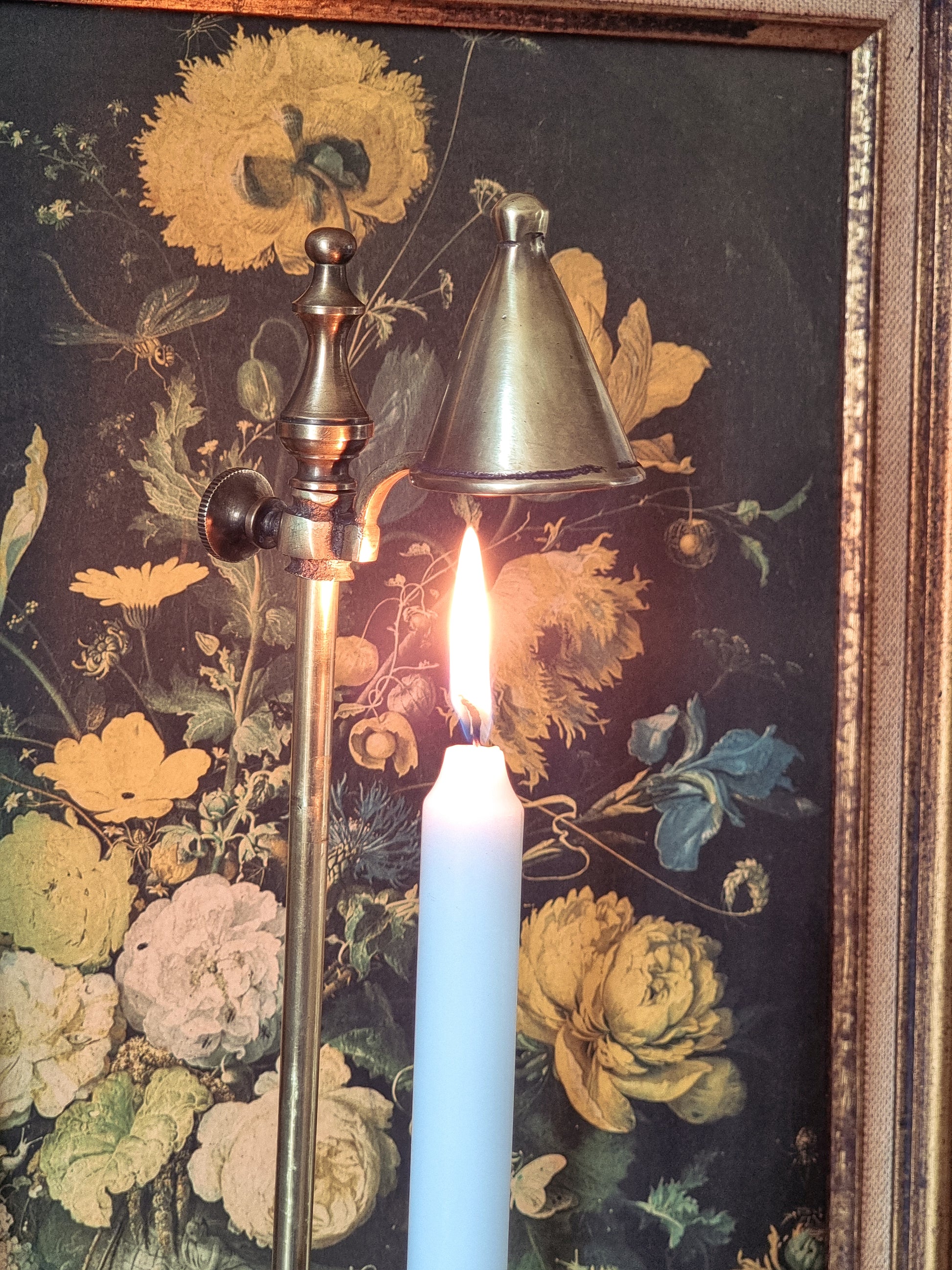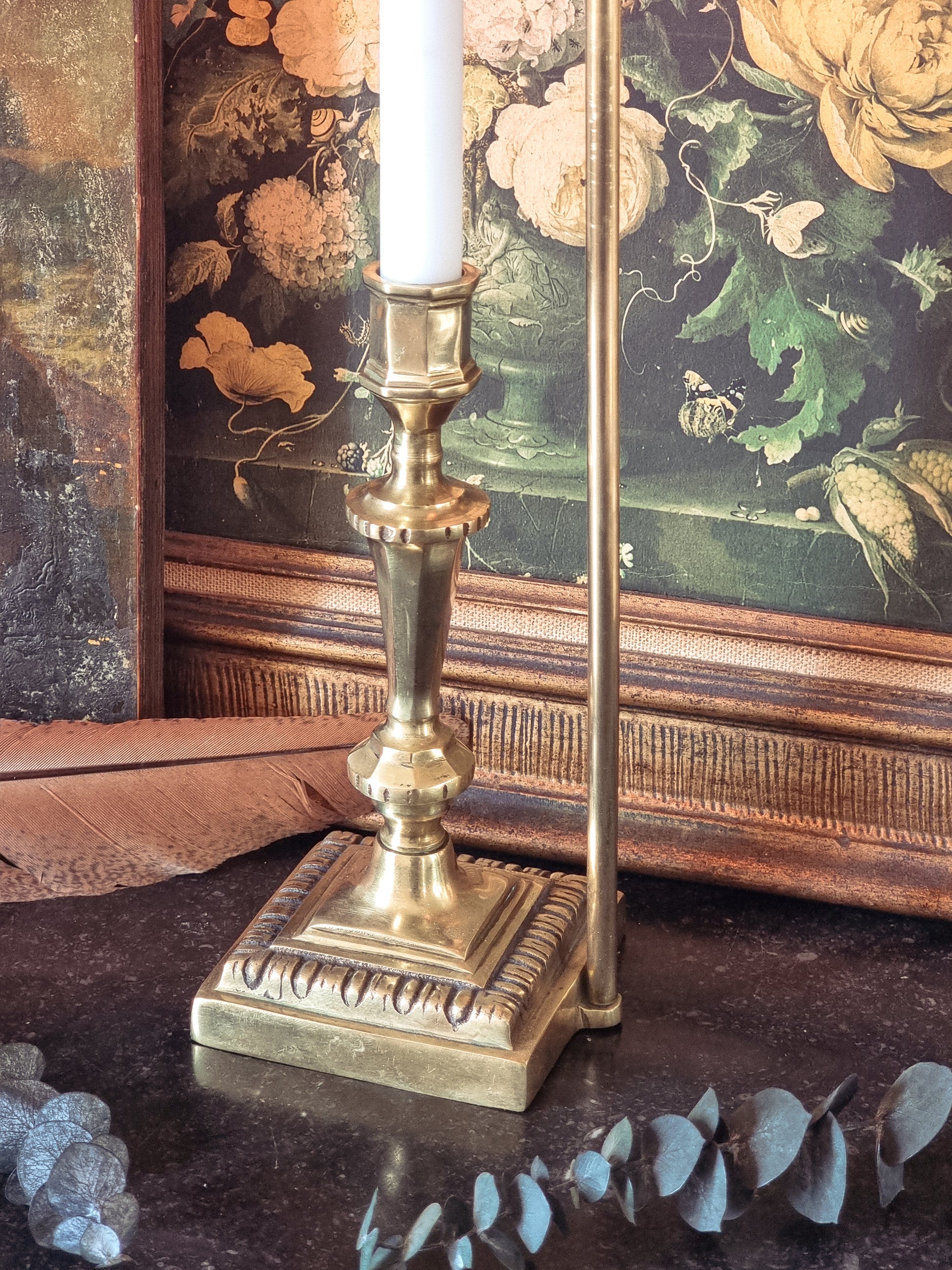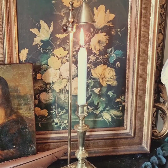 Sublime bougeoir en laiton massif avec son éteignoir réglable d'origine.