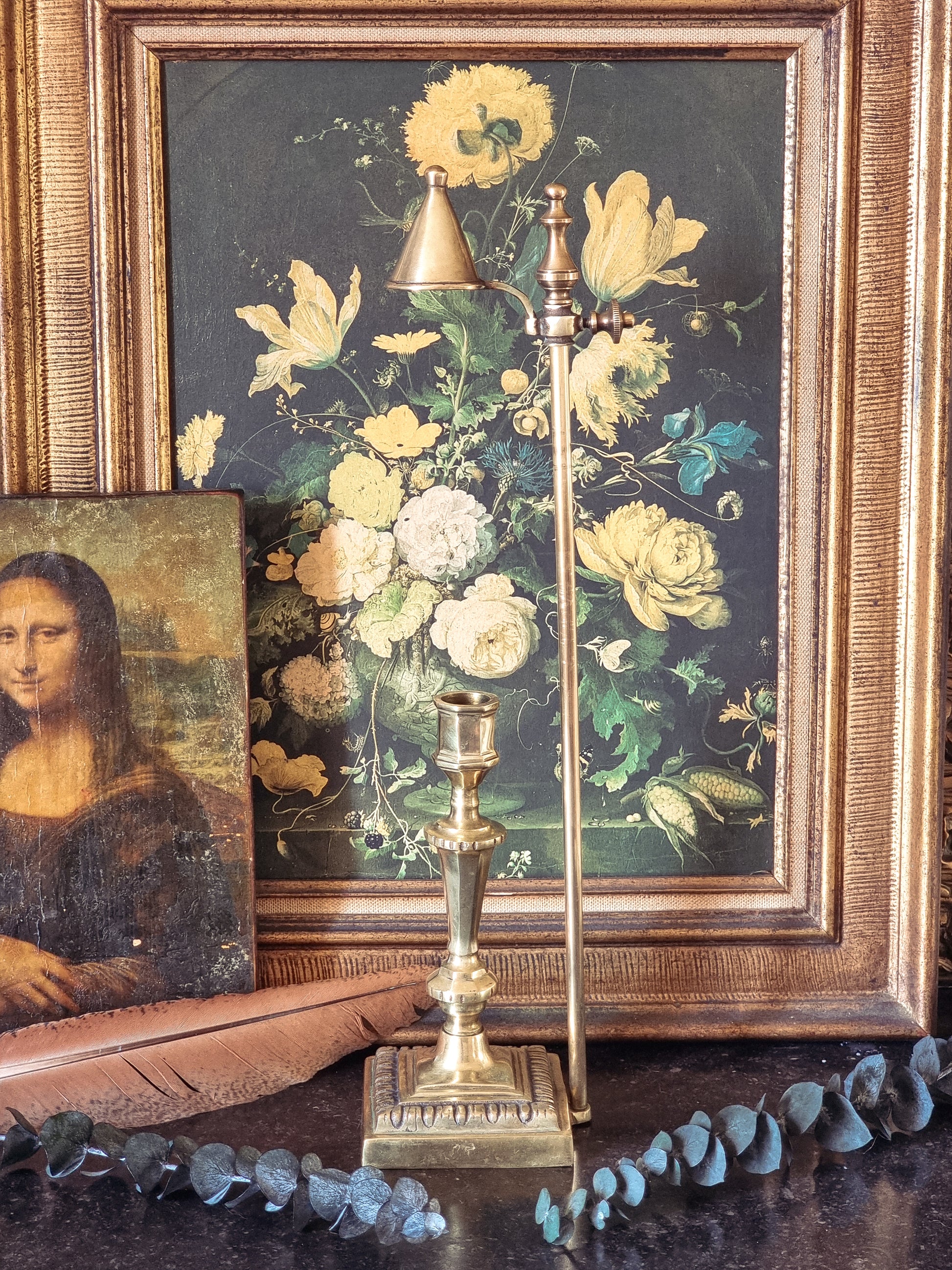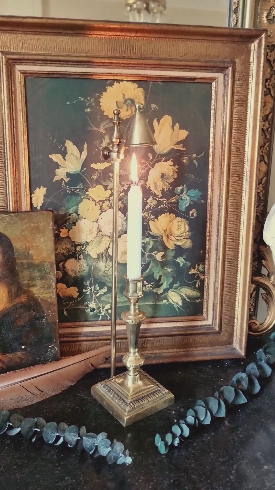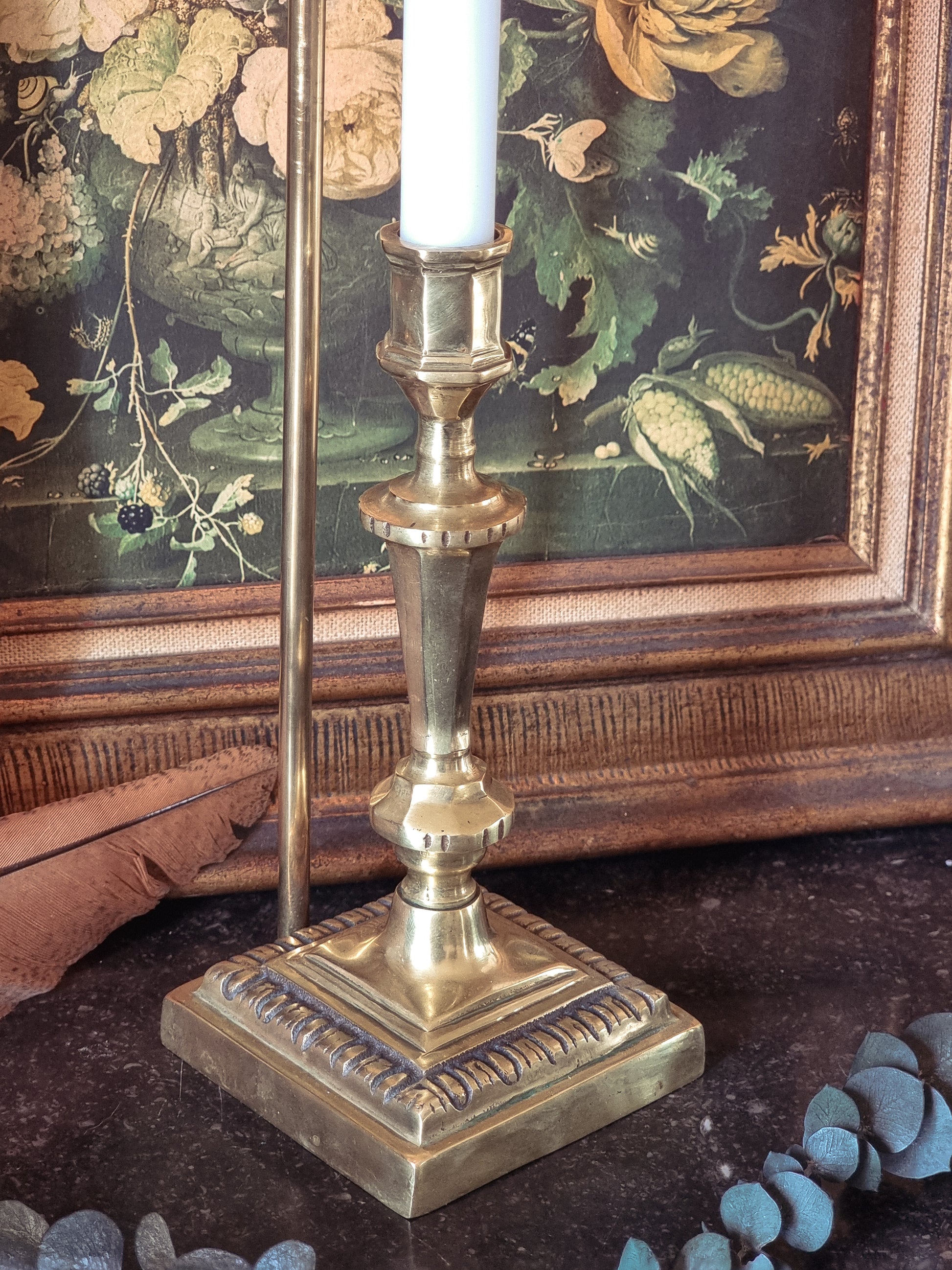 Sublime bougeoir en laiton massif avec son éteignoir réglable d'origine.