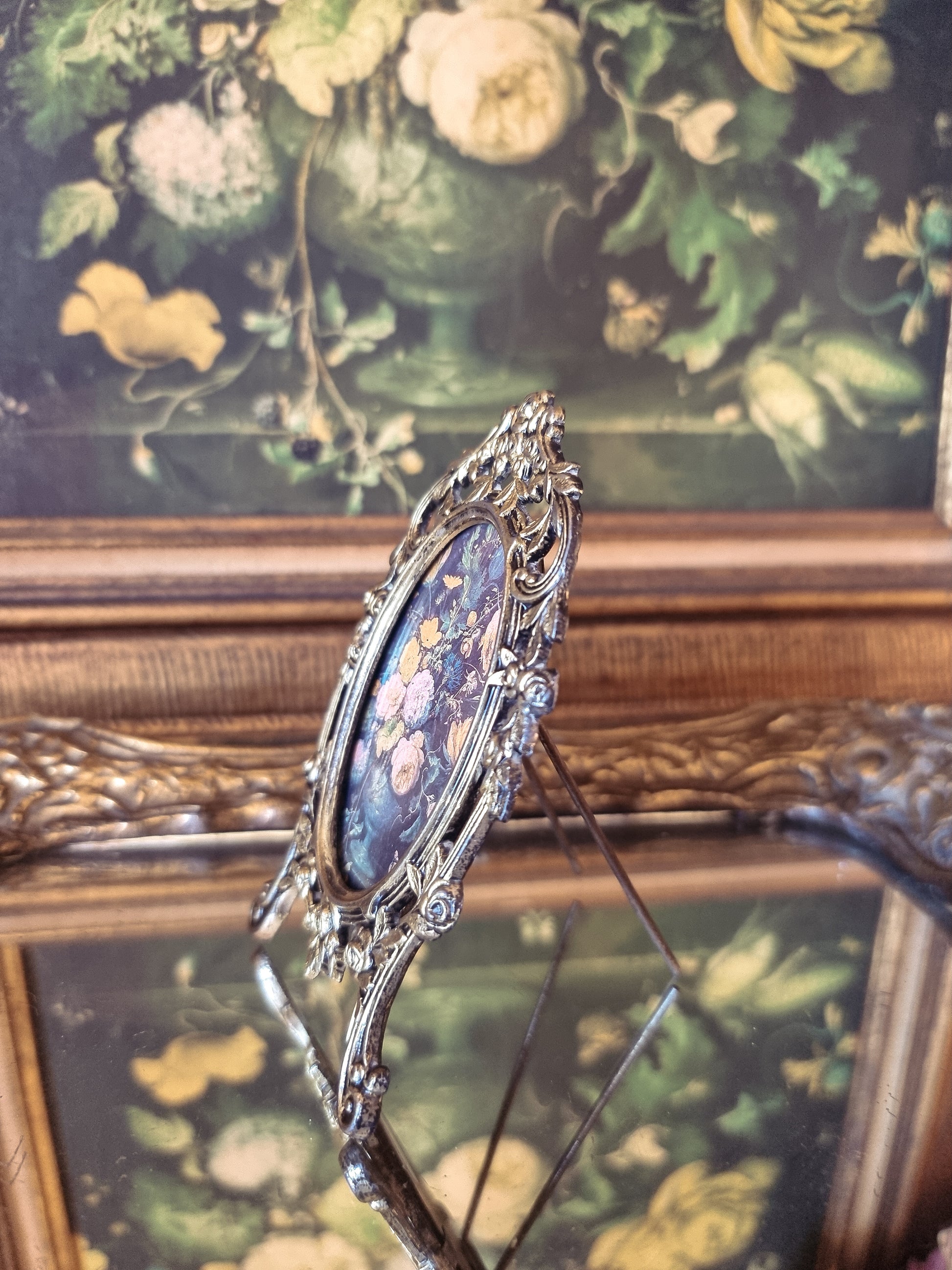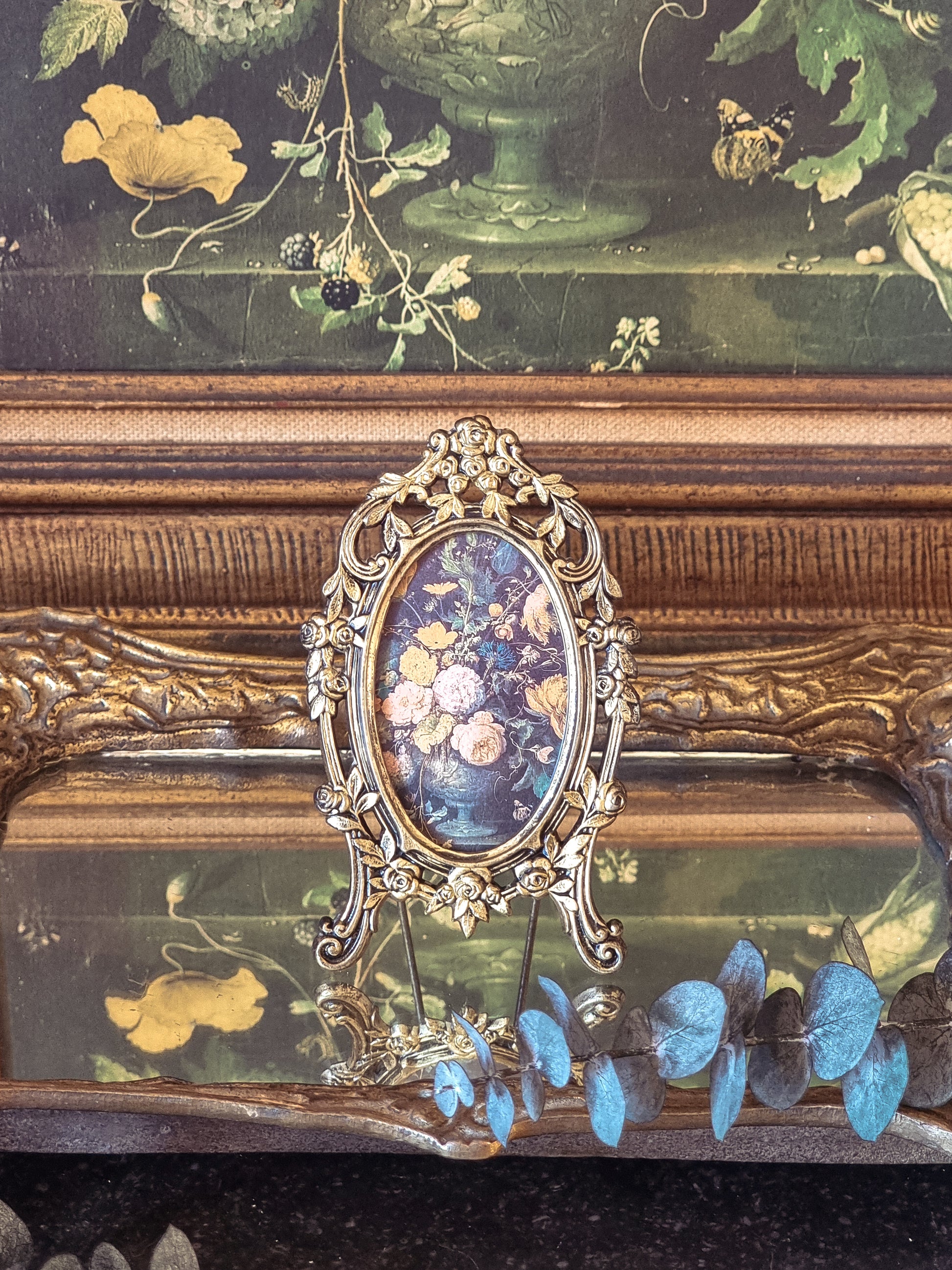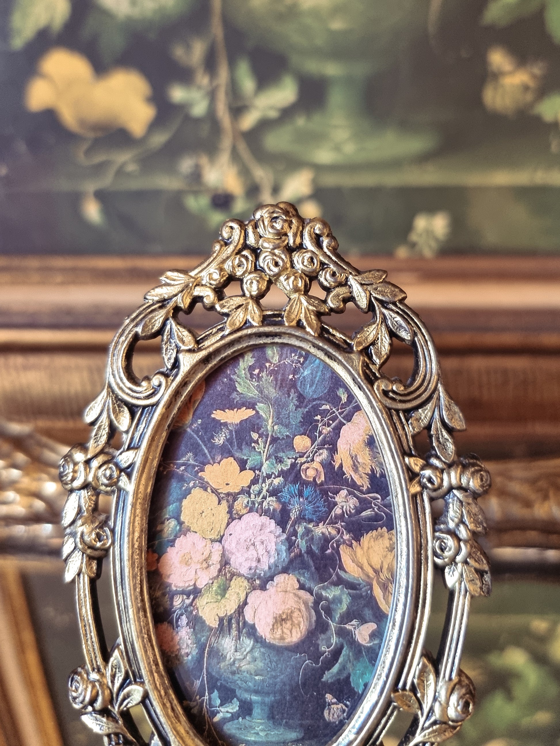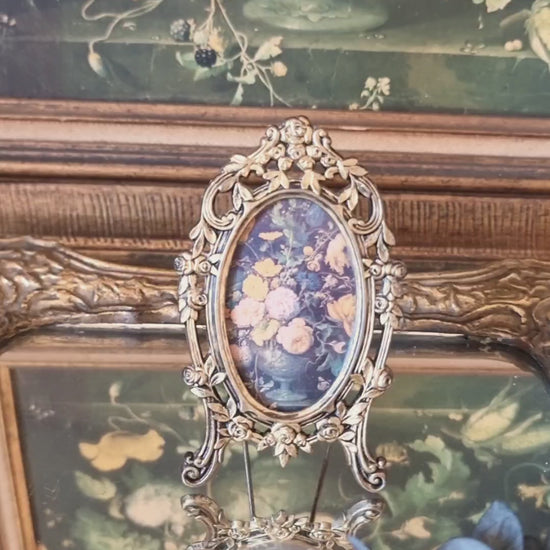 Petit cadre Art Nouveau à poser en régule, doré à la crème à dorer. Début XXe.