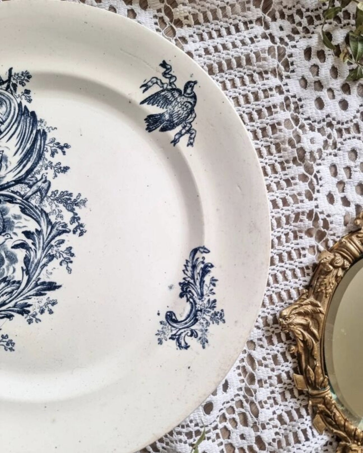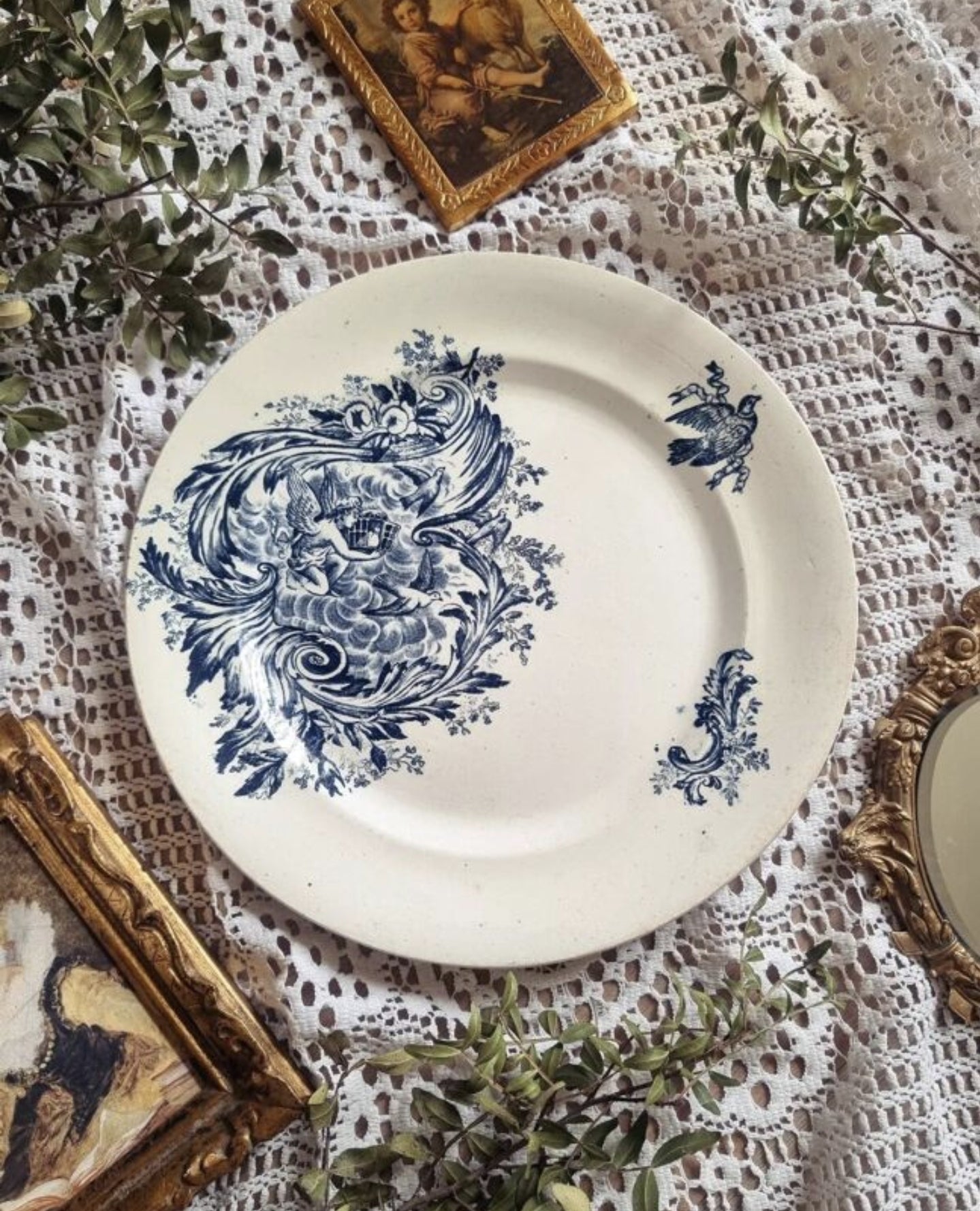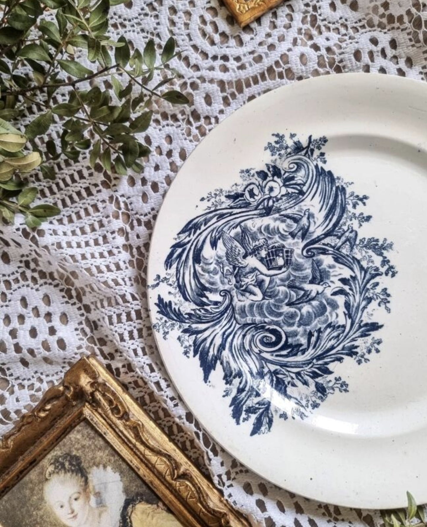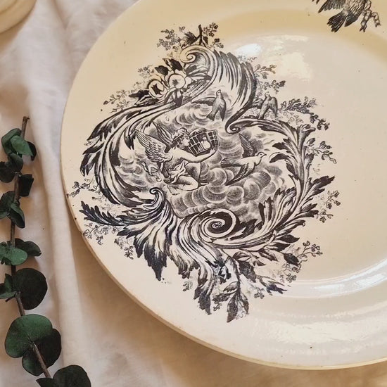 Superbe et grand plat de chez salins, modèle antoinette chérubin, fin XIXe.