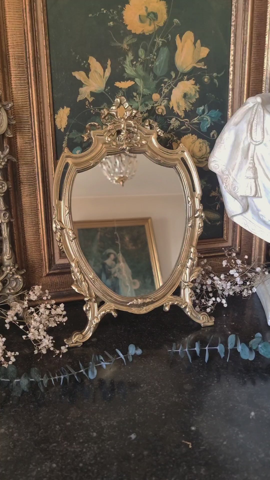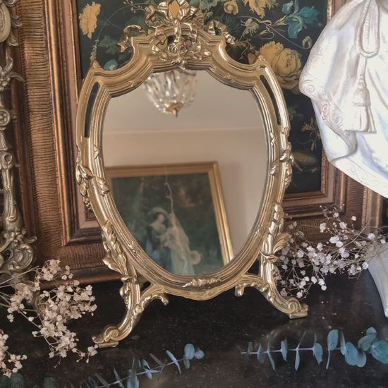 Magnifique miroir de table de style Louis XVI en laiton doré massif, vers 1970. Très probablement issu d'une production italienne.