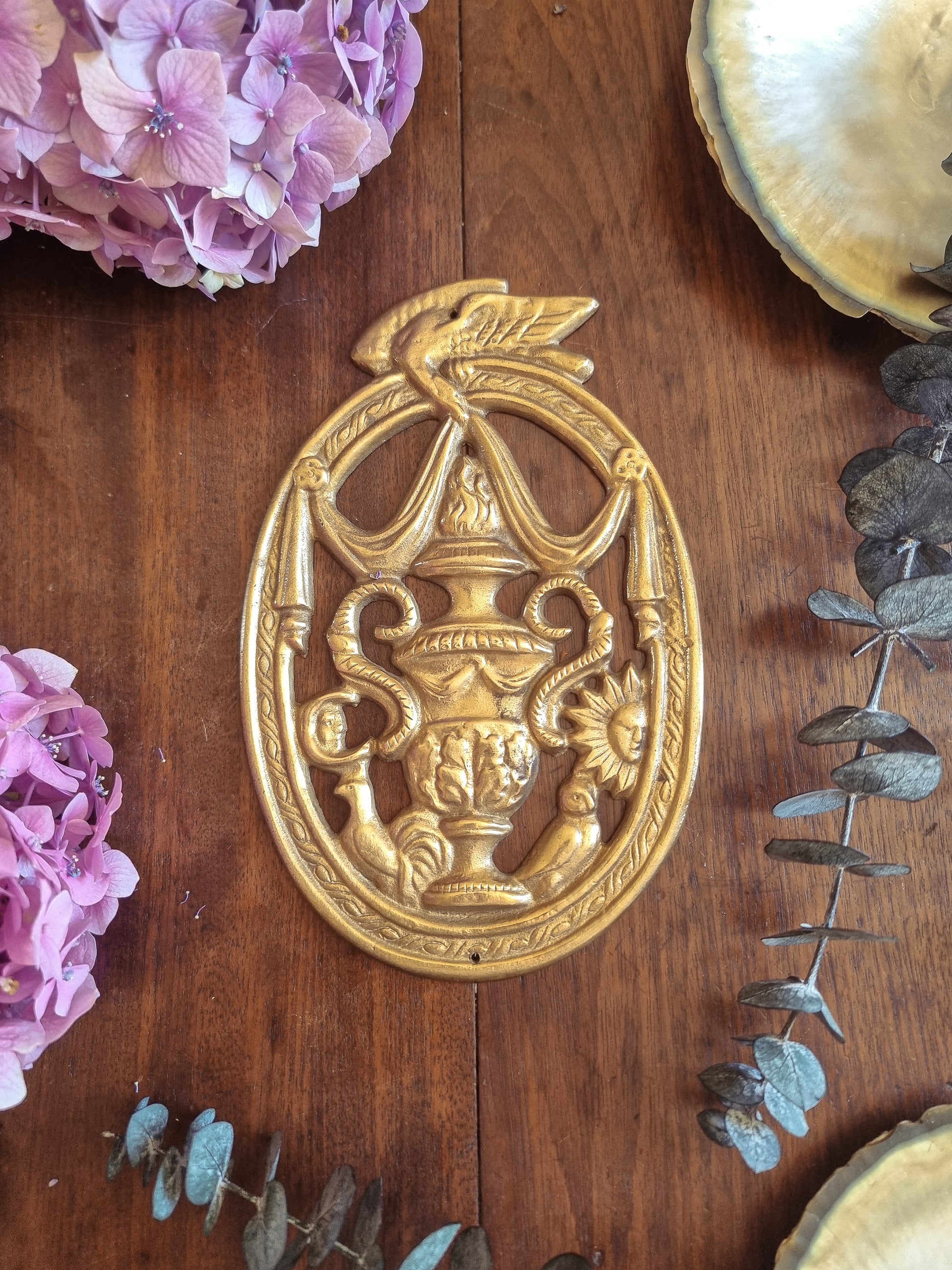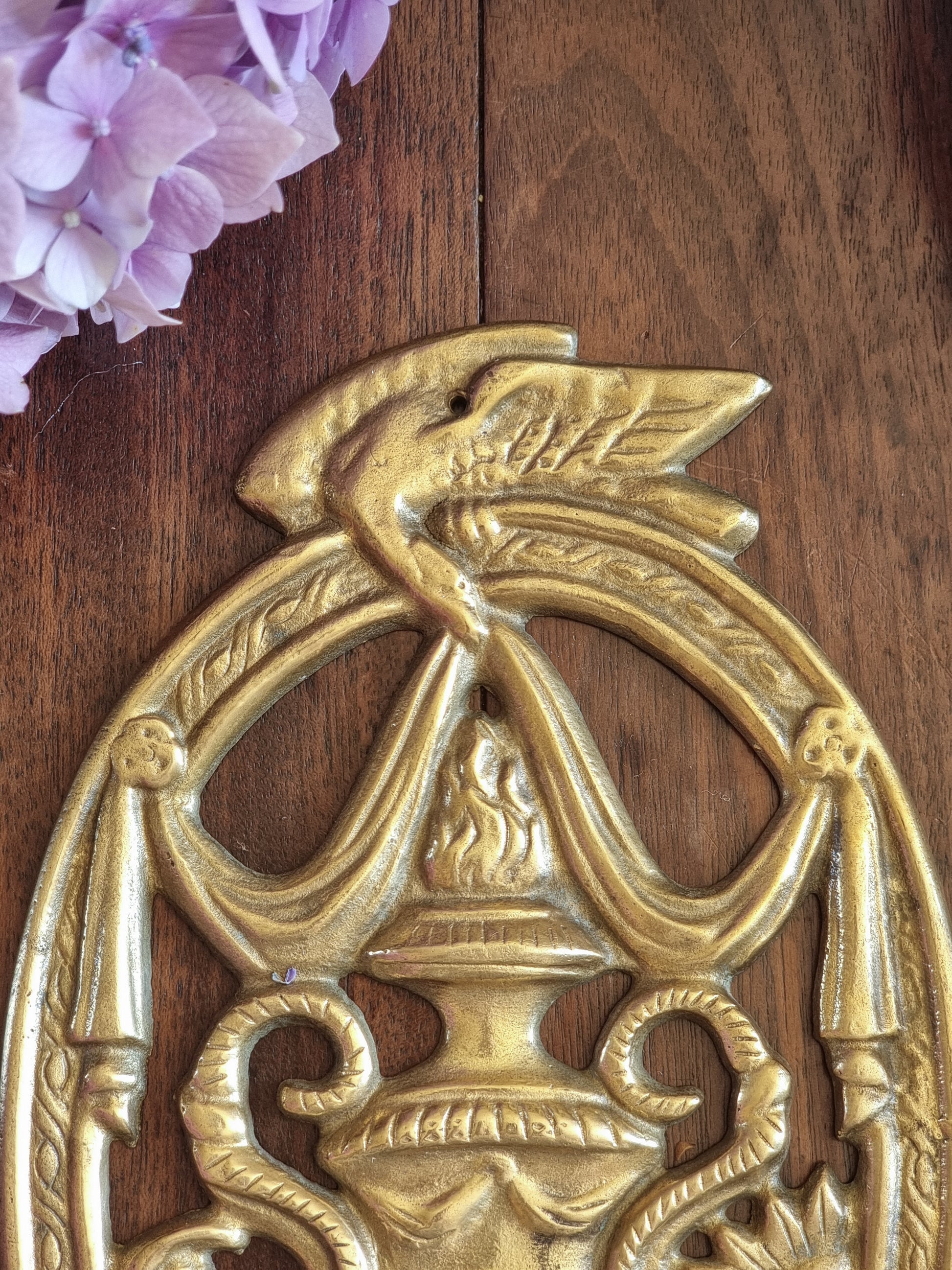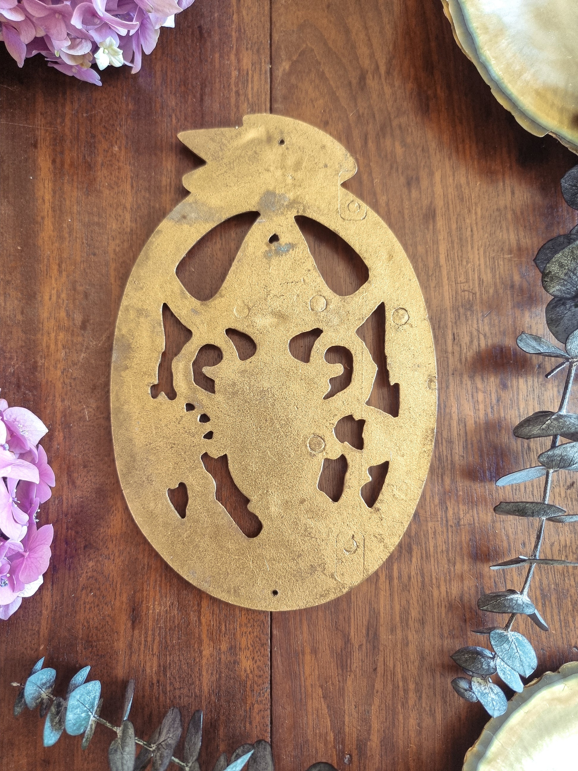 Superbe ornement en laiton massif. C'est un ancien élément de carillon Allemand "ORFAC". Il pourra faire un superbe ornement mural.