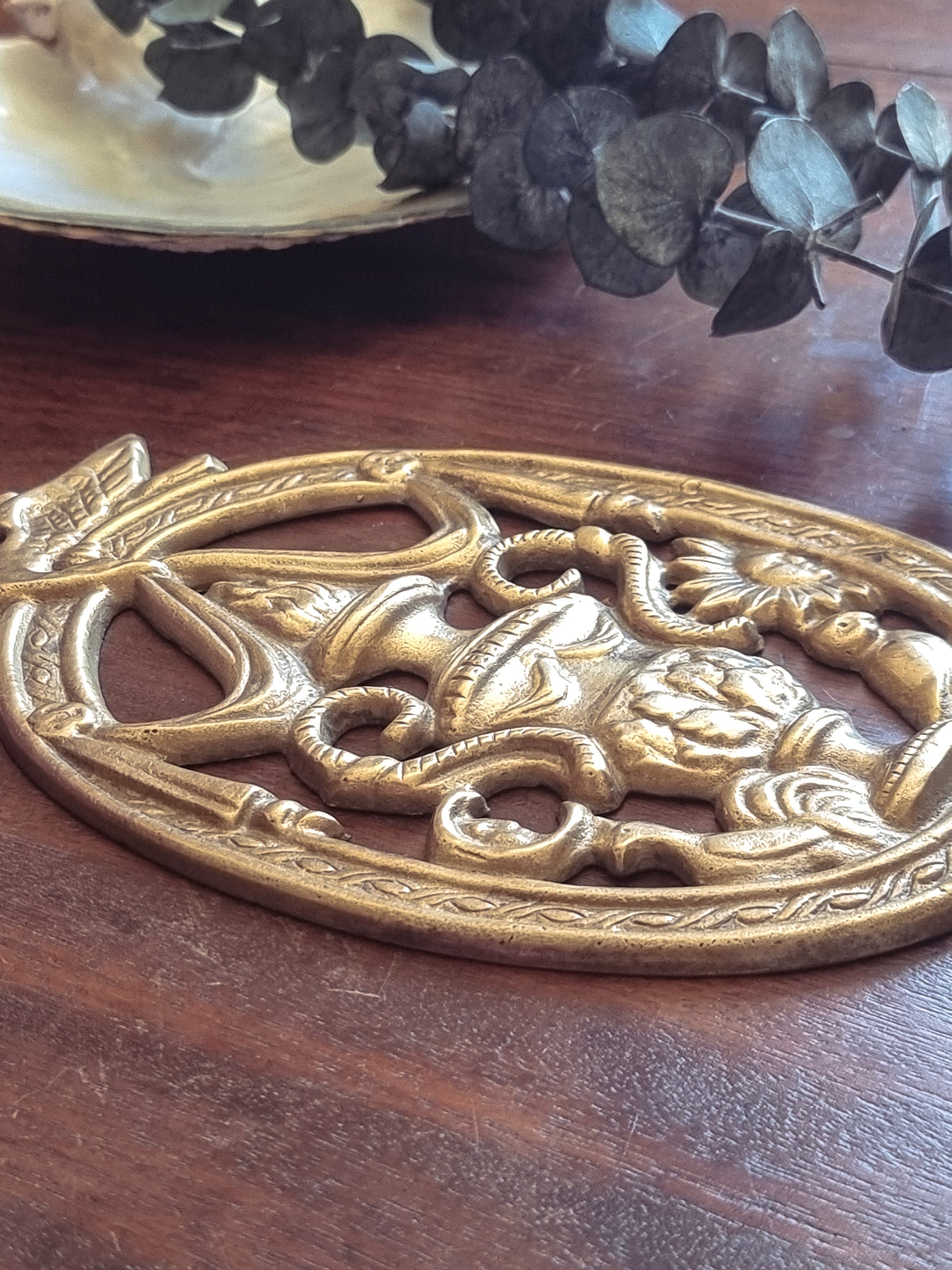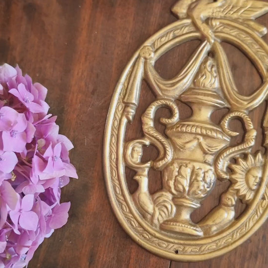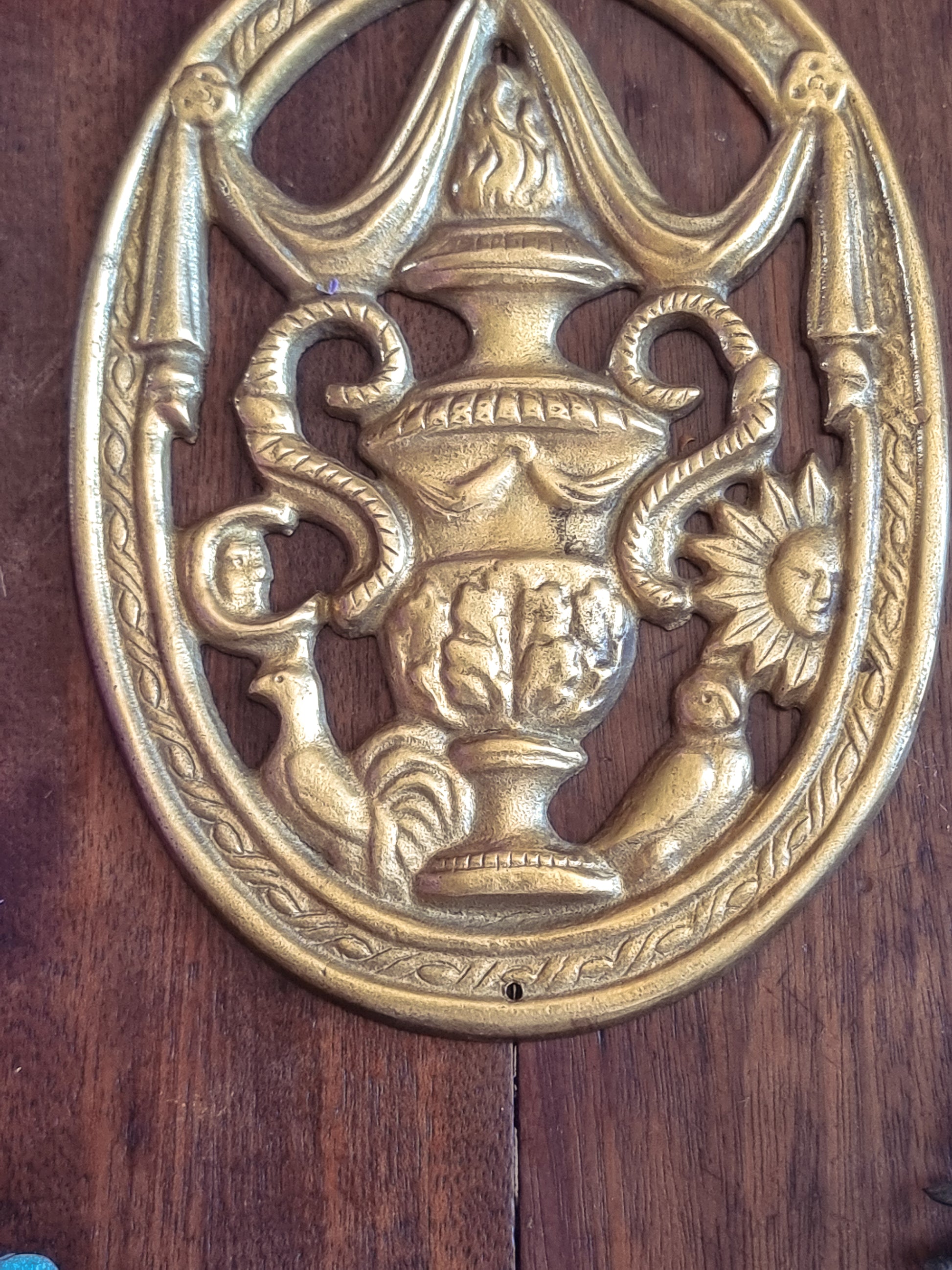 Superbe ornement en laiton massif. C'est un ancien élément de carillon Allemand "ORFAC". Il pourra faire un superbe ornement mural.