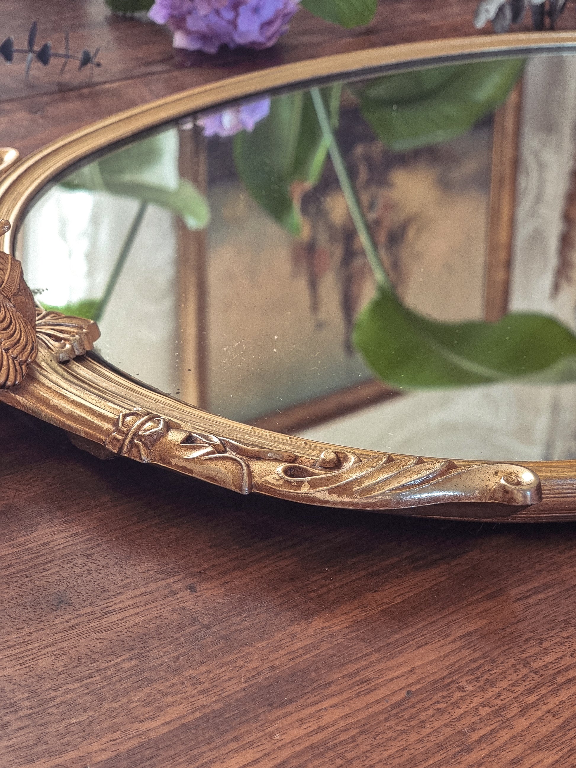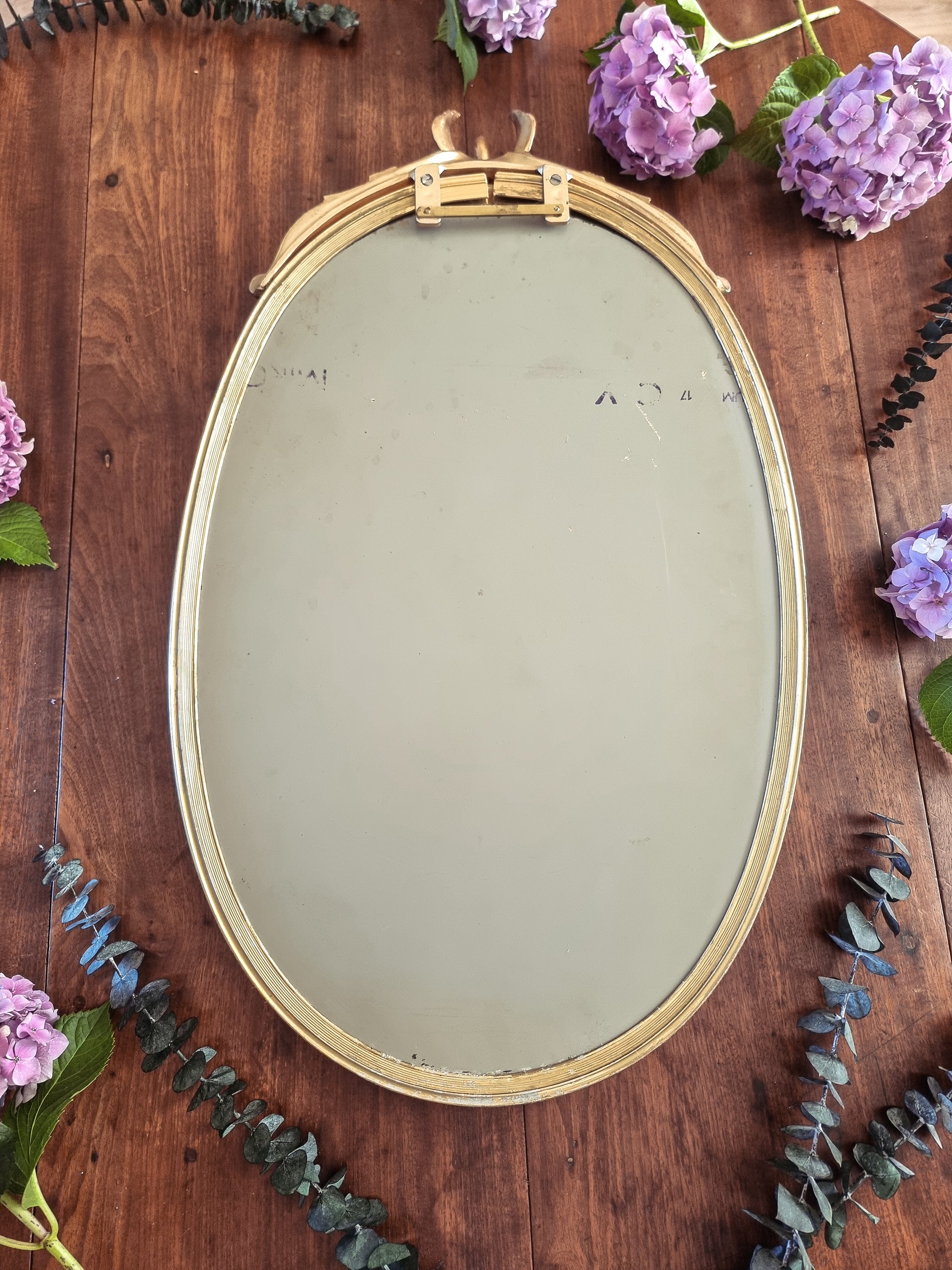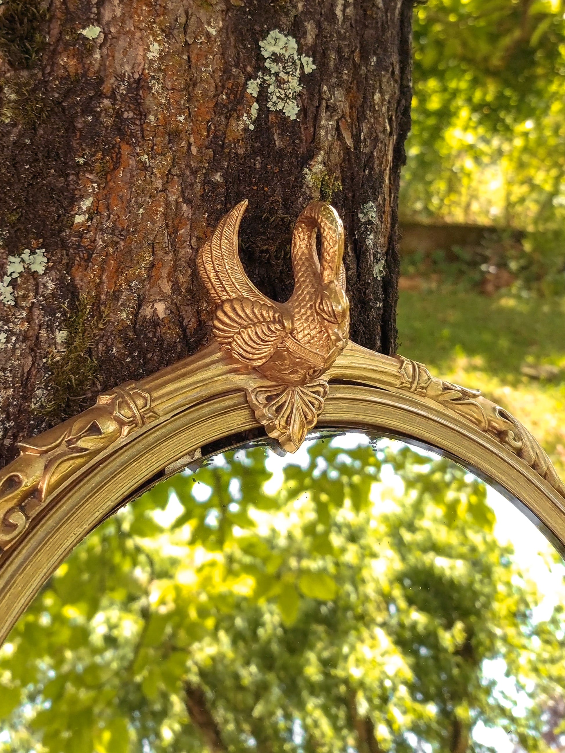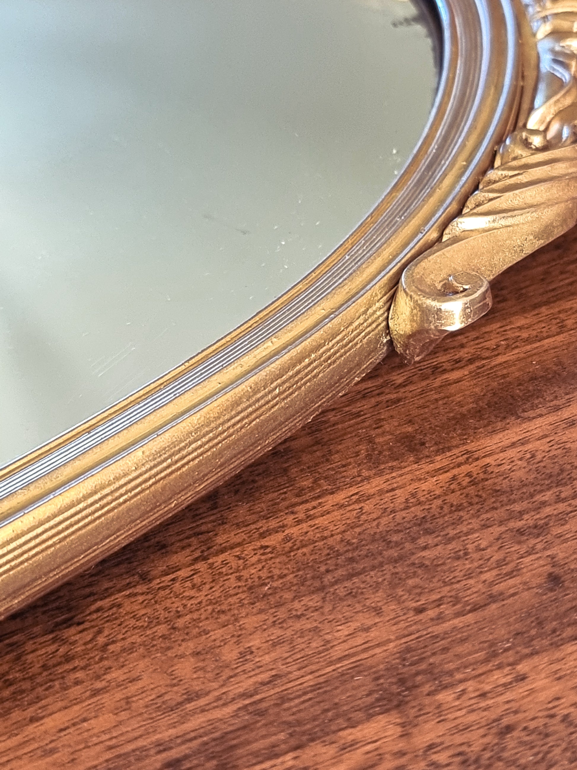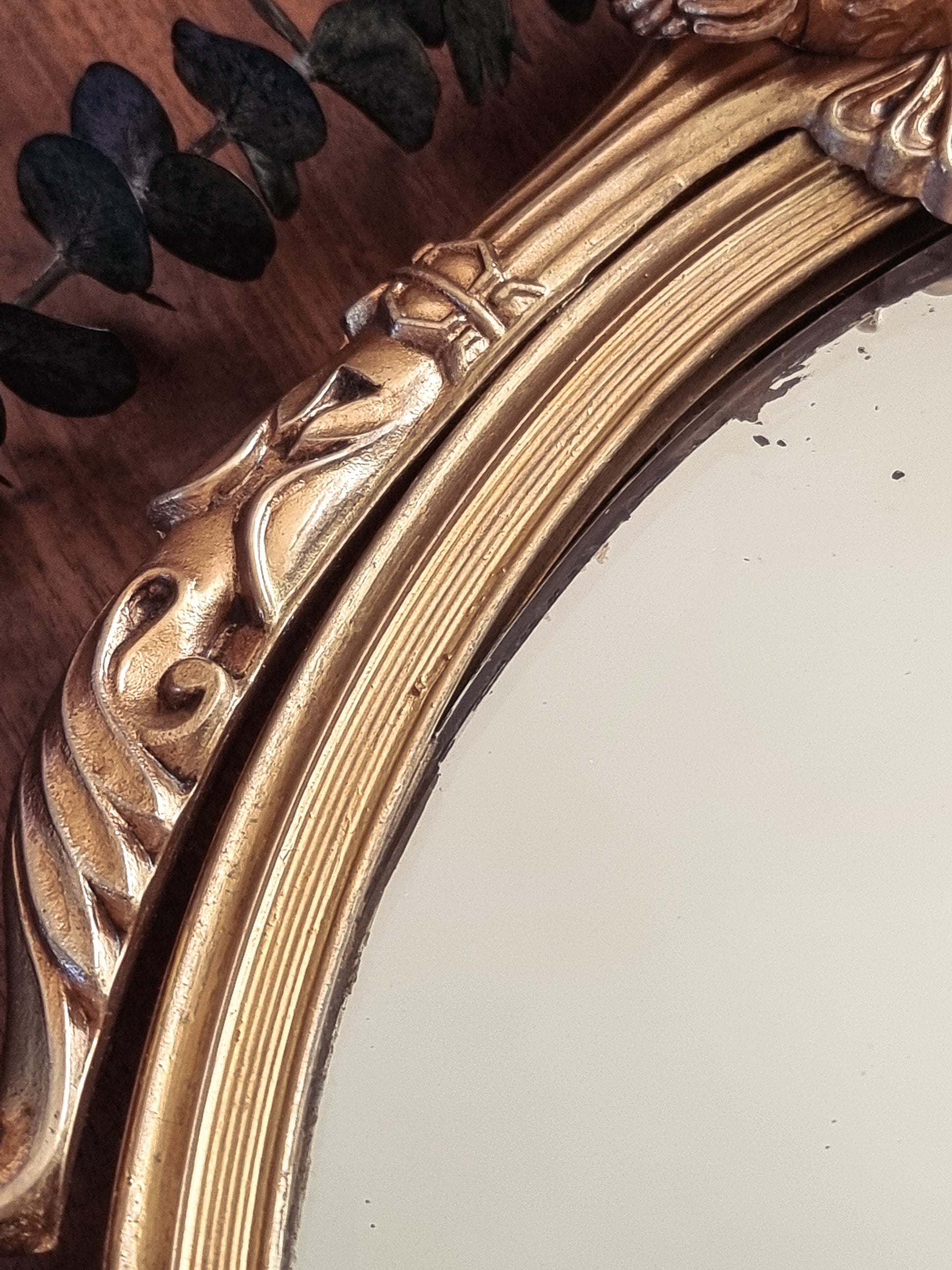 Il a été longuement restauré : Sous couche de peinture doré, crème à doré et enfin un vernis protecteur à été appliqué à l'ensemble.
