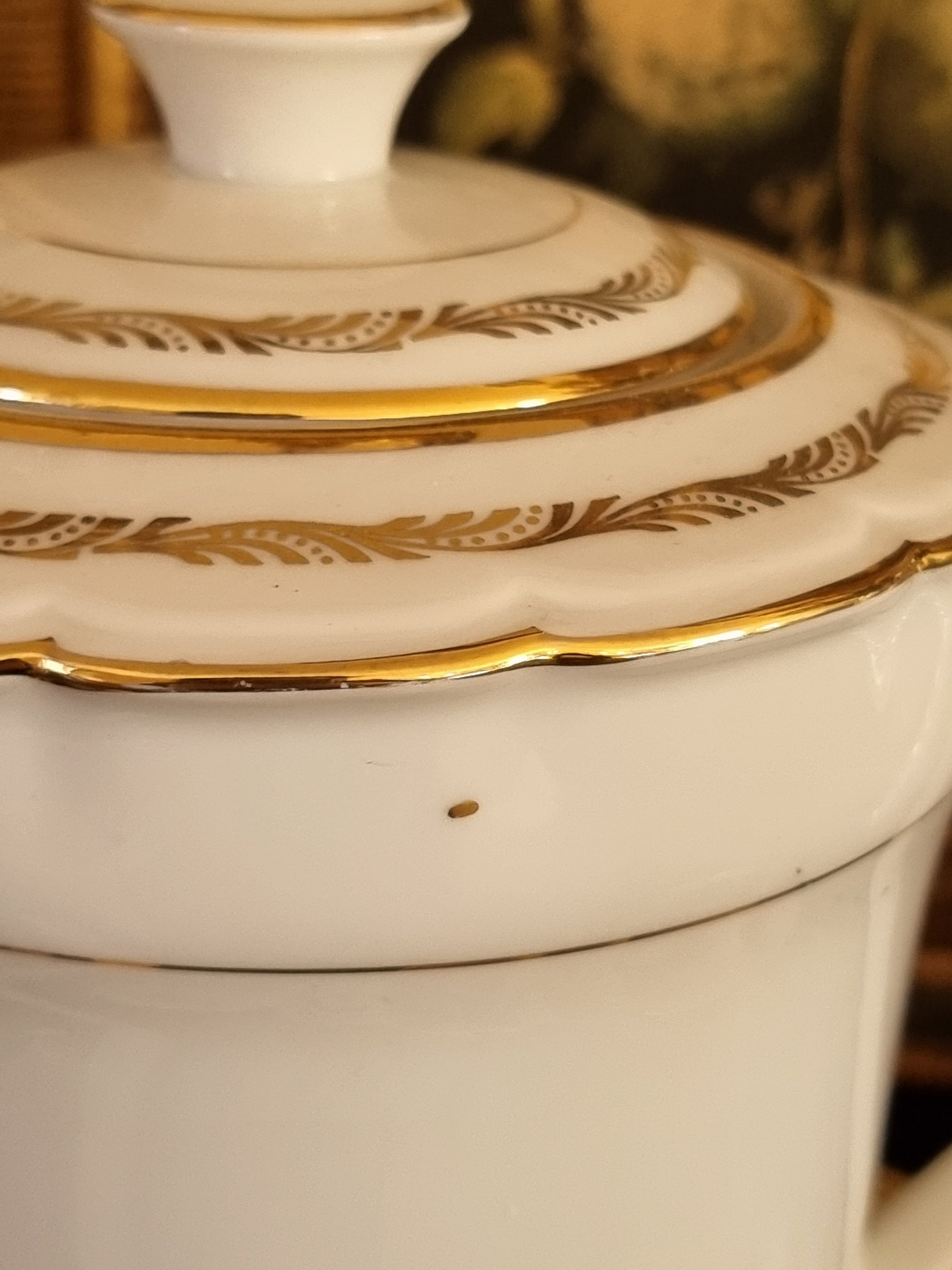 L'ensemble est en très bon état général. Ni fêles, ni ébréchures. Quelques petites taches discrètes sur la porcelaine.