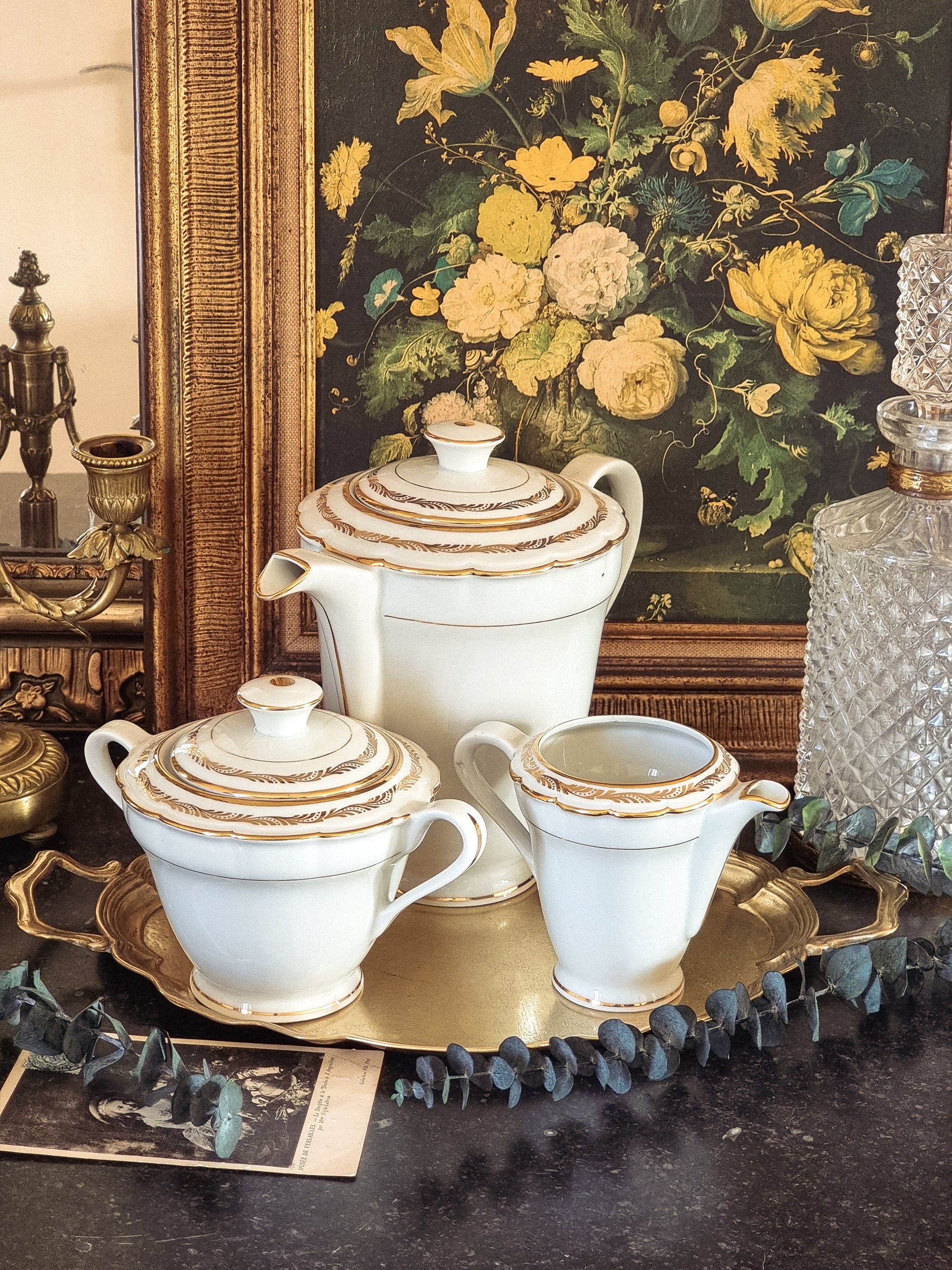Comprend : Une cafetière, un pot à lait et un sucrier.