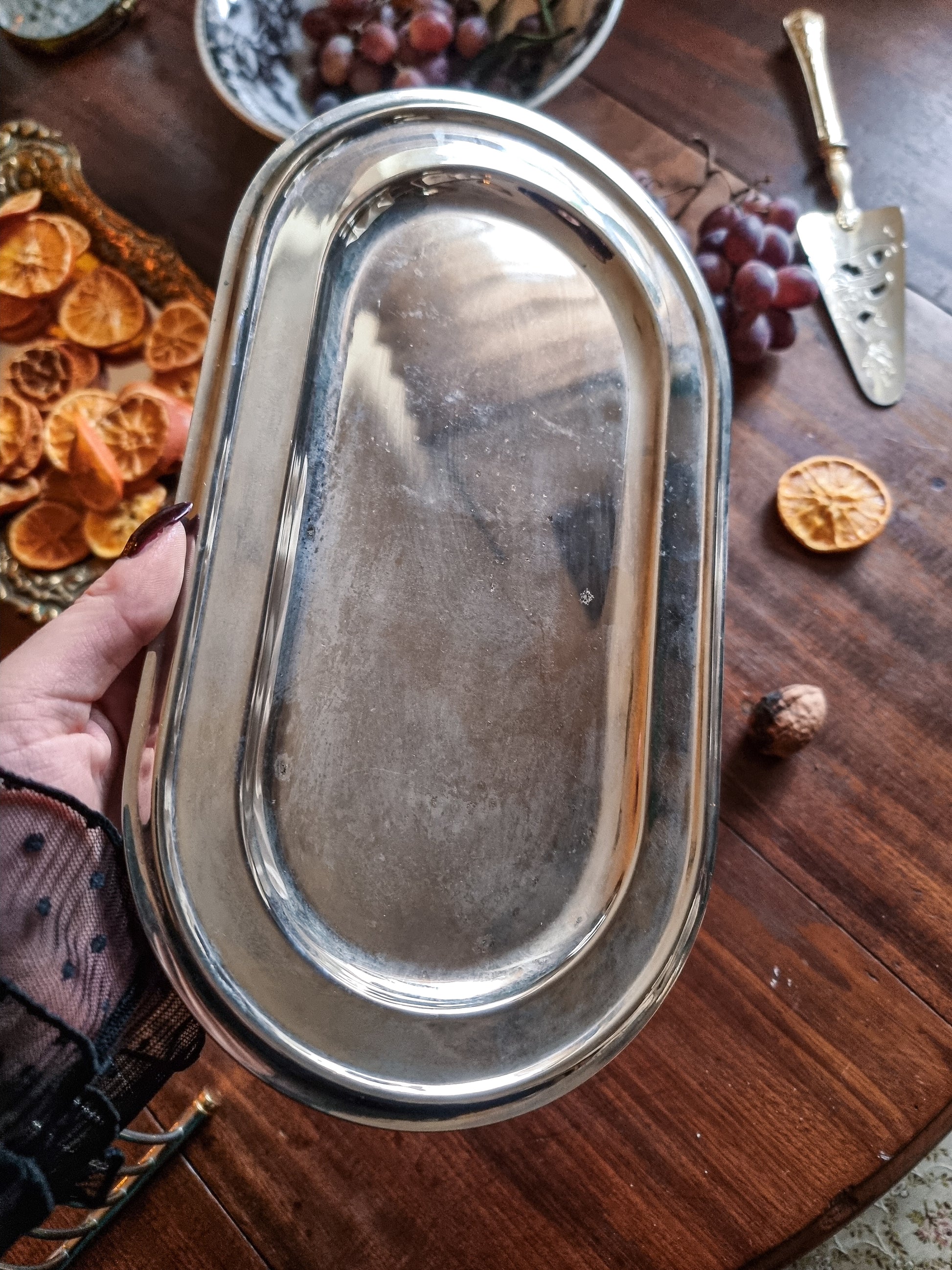 Superbe service à foie gras pouvant également servir de porte toast en métal argenté, vintage.