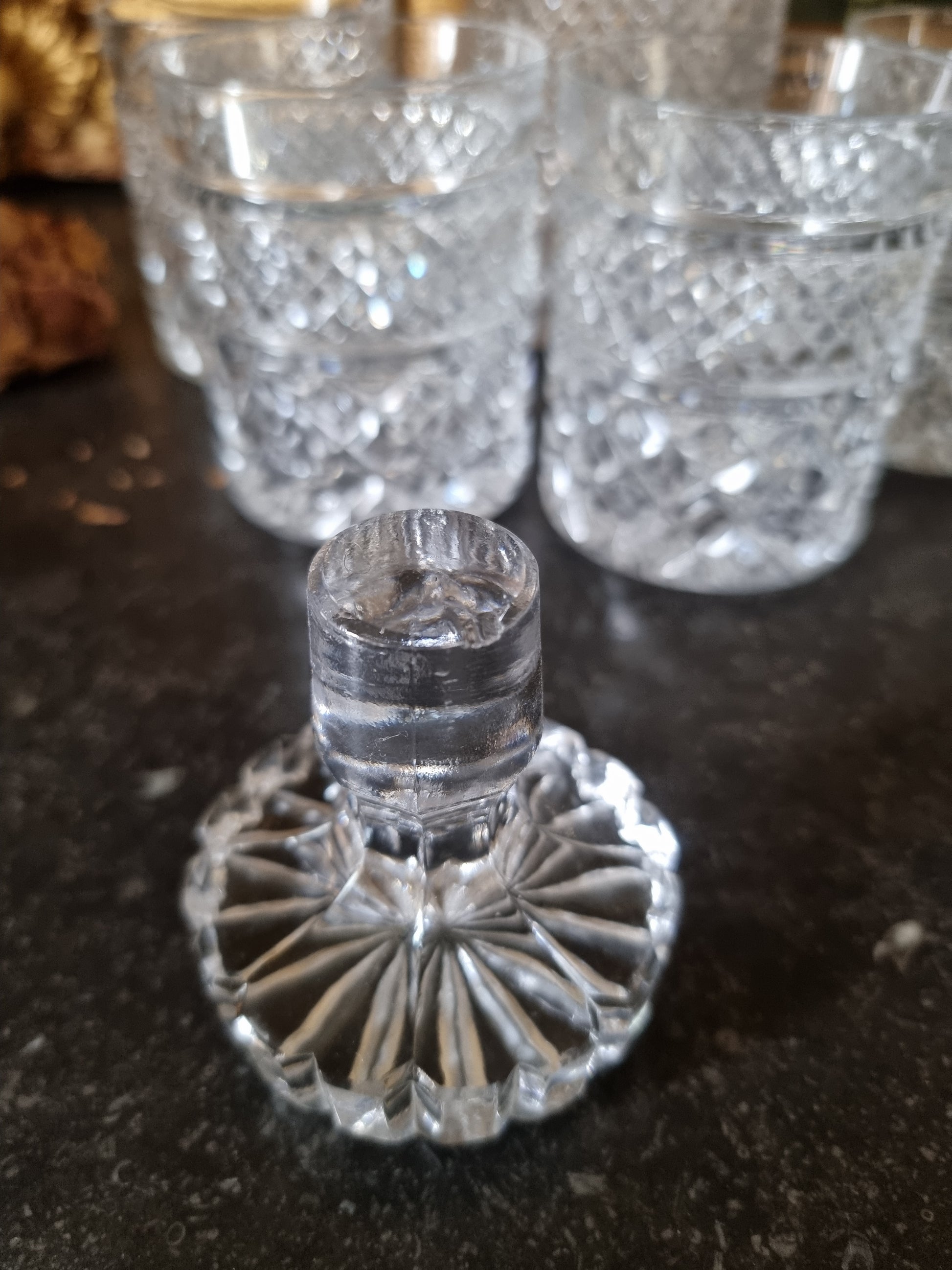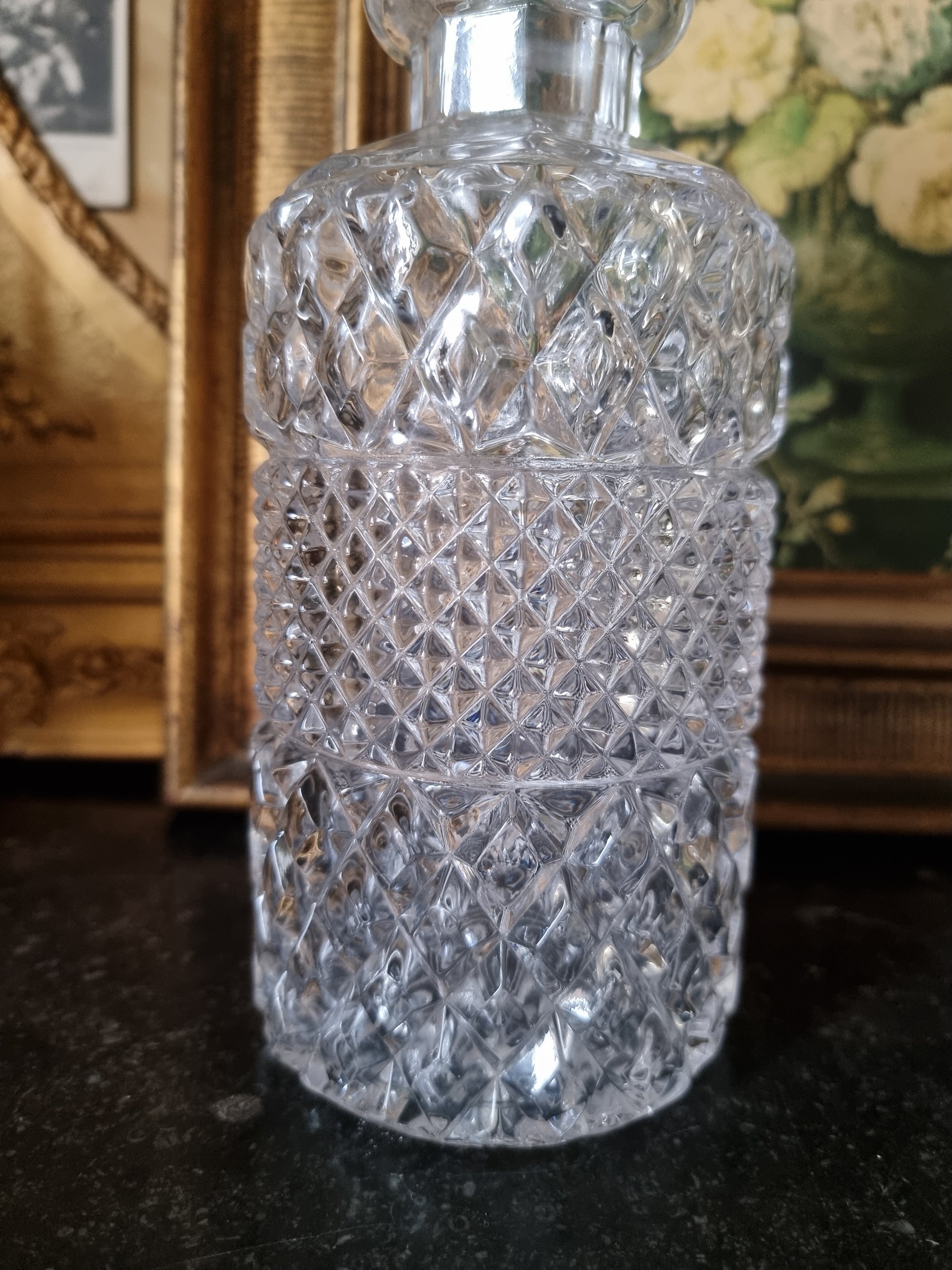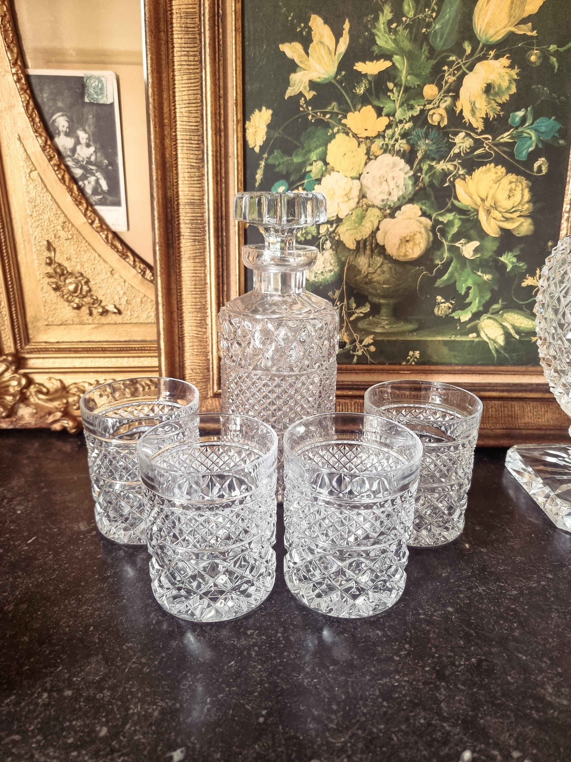 Magnifique service à whisky en cristal moulé de style pointe de diamant.