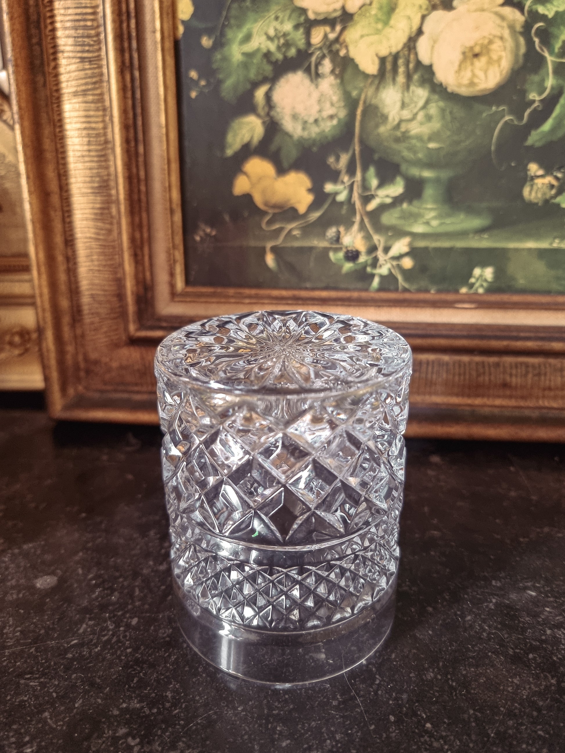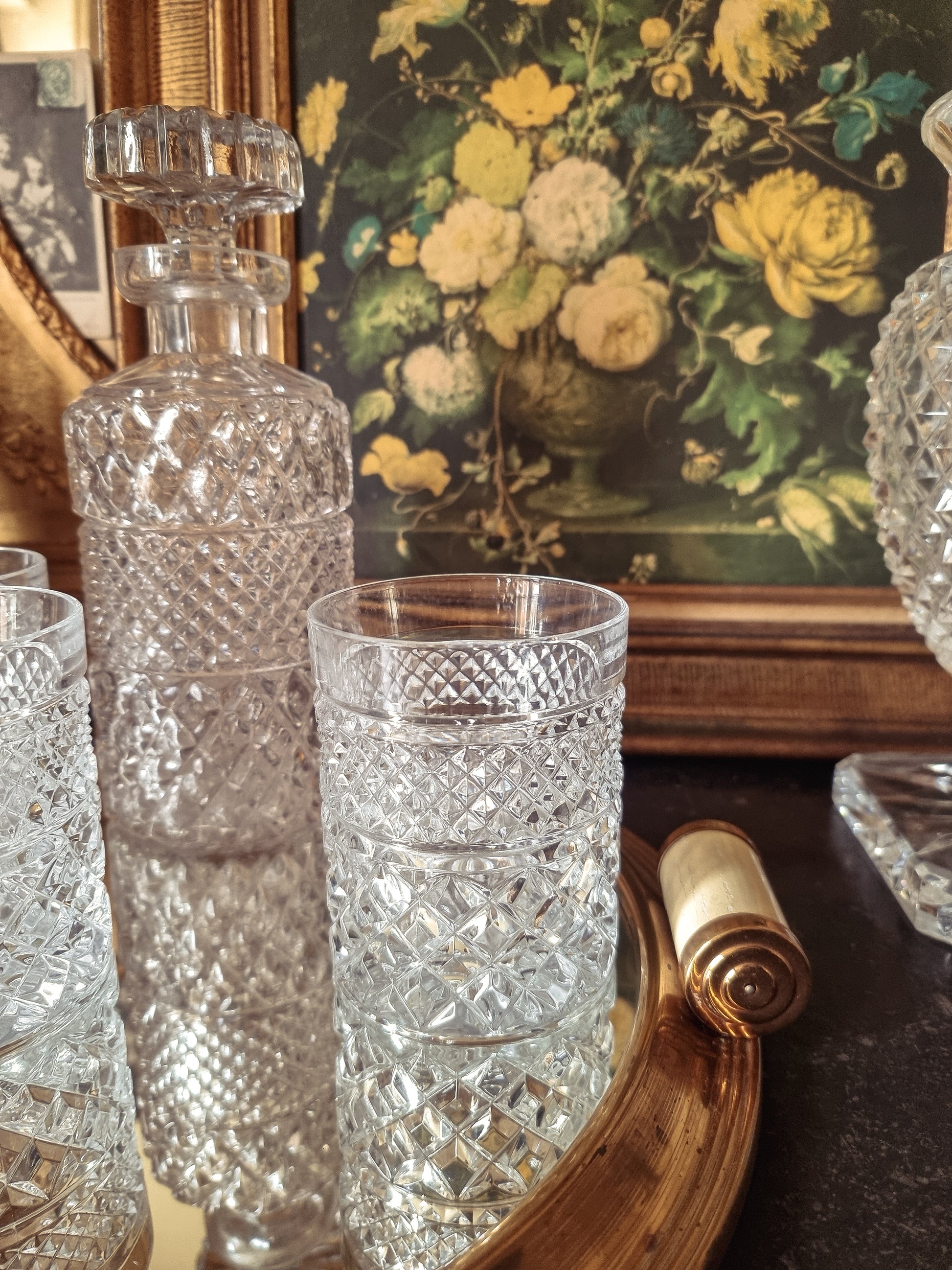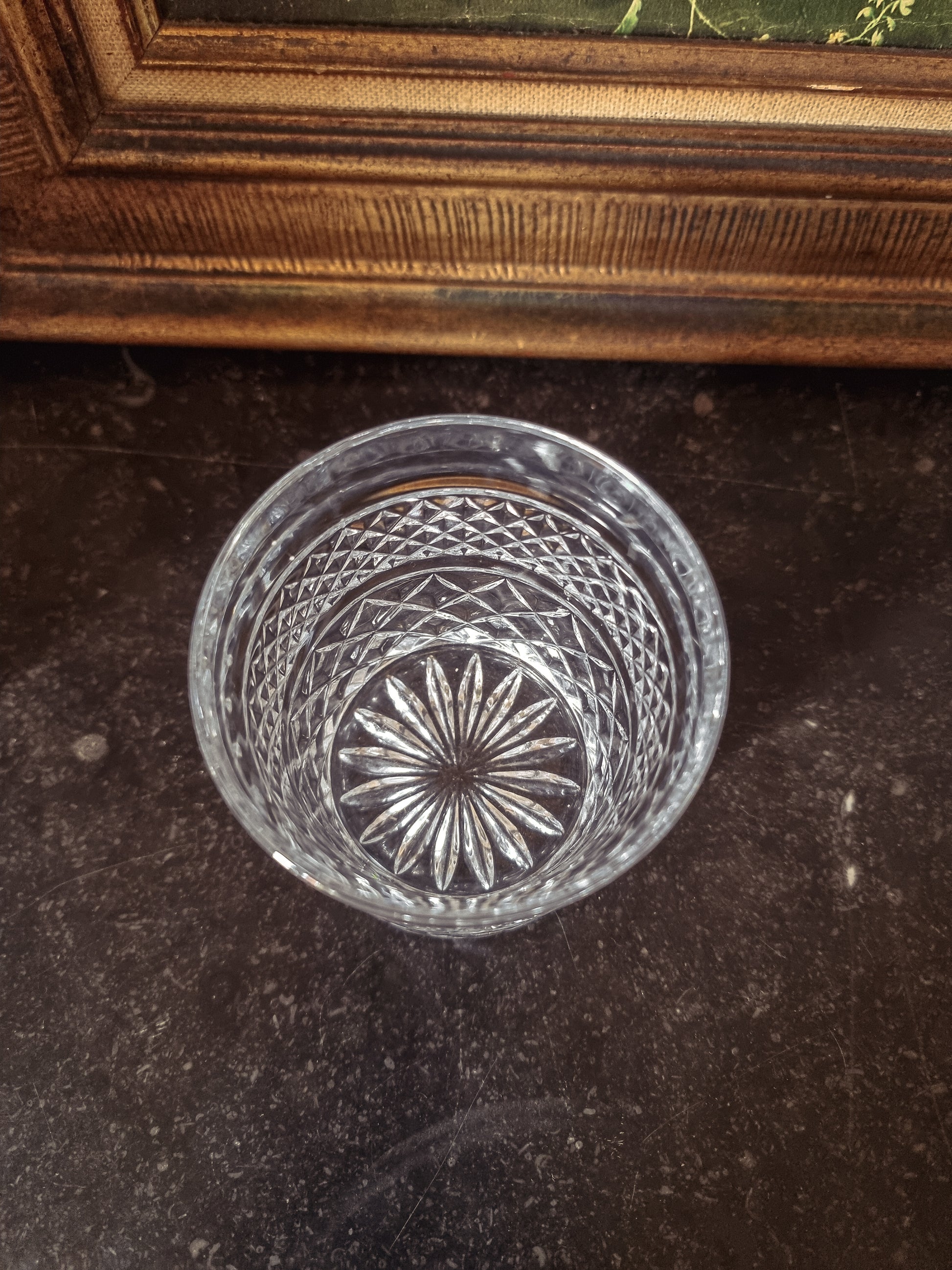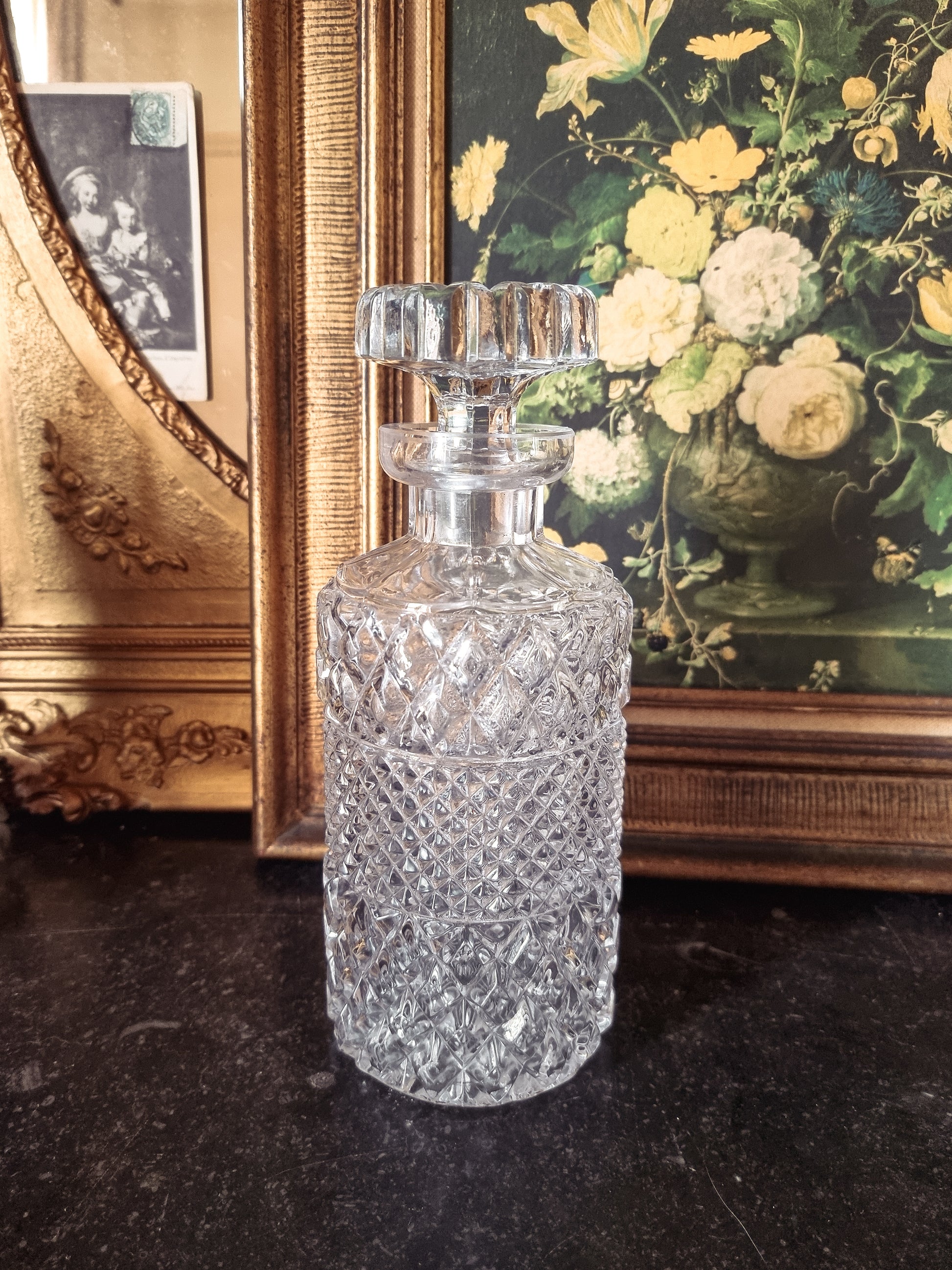 Magnifique service à whisky en cristal moulé de style pointe de diamant.
